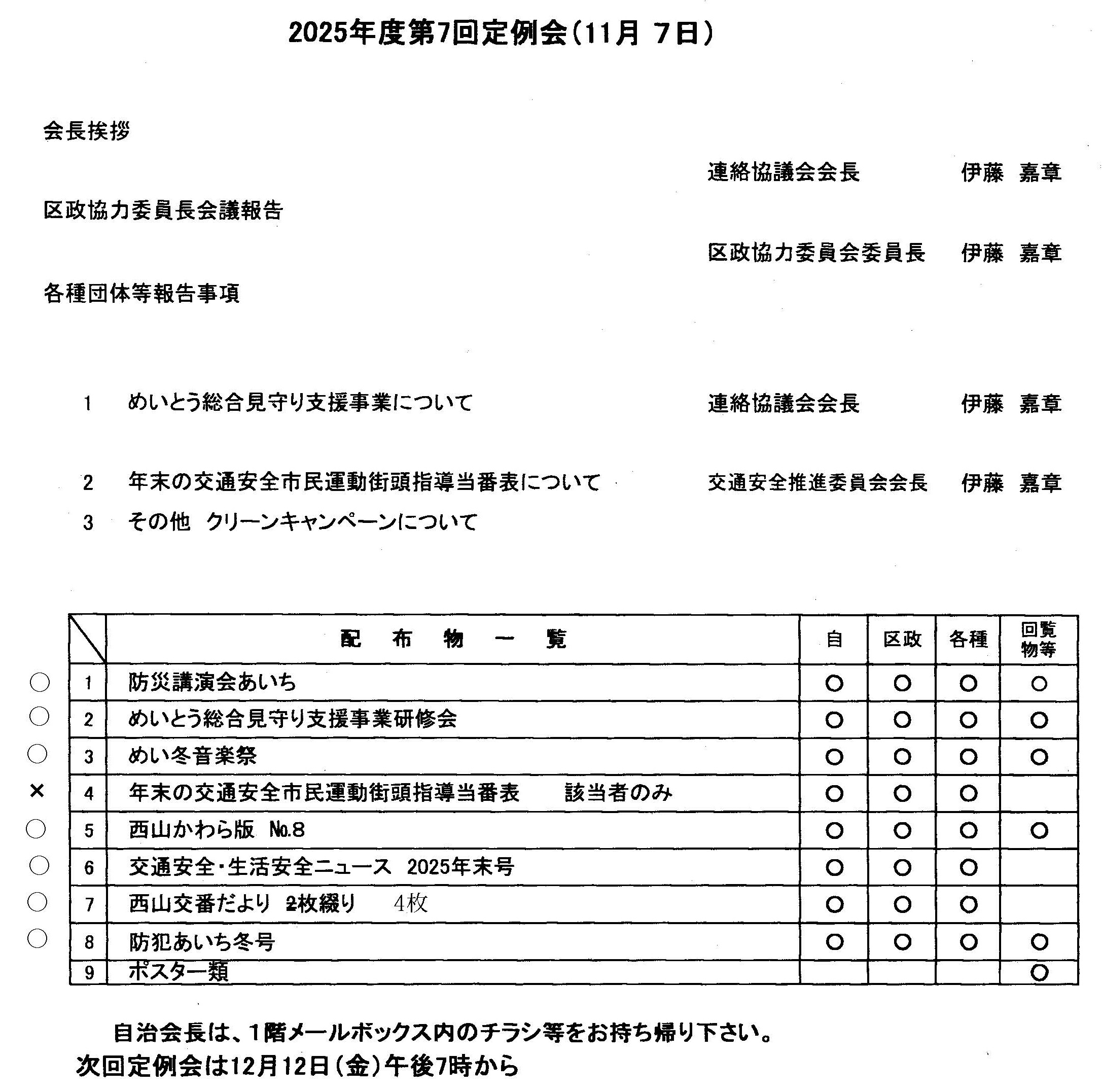 令和7年11月組長会が11月23日(日・祝)にありました。